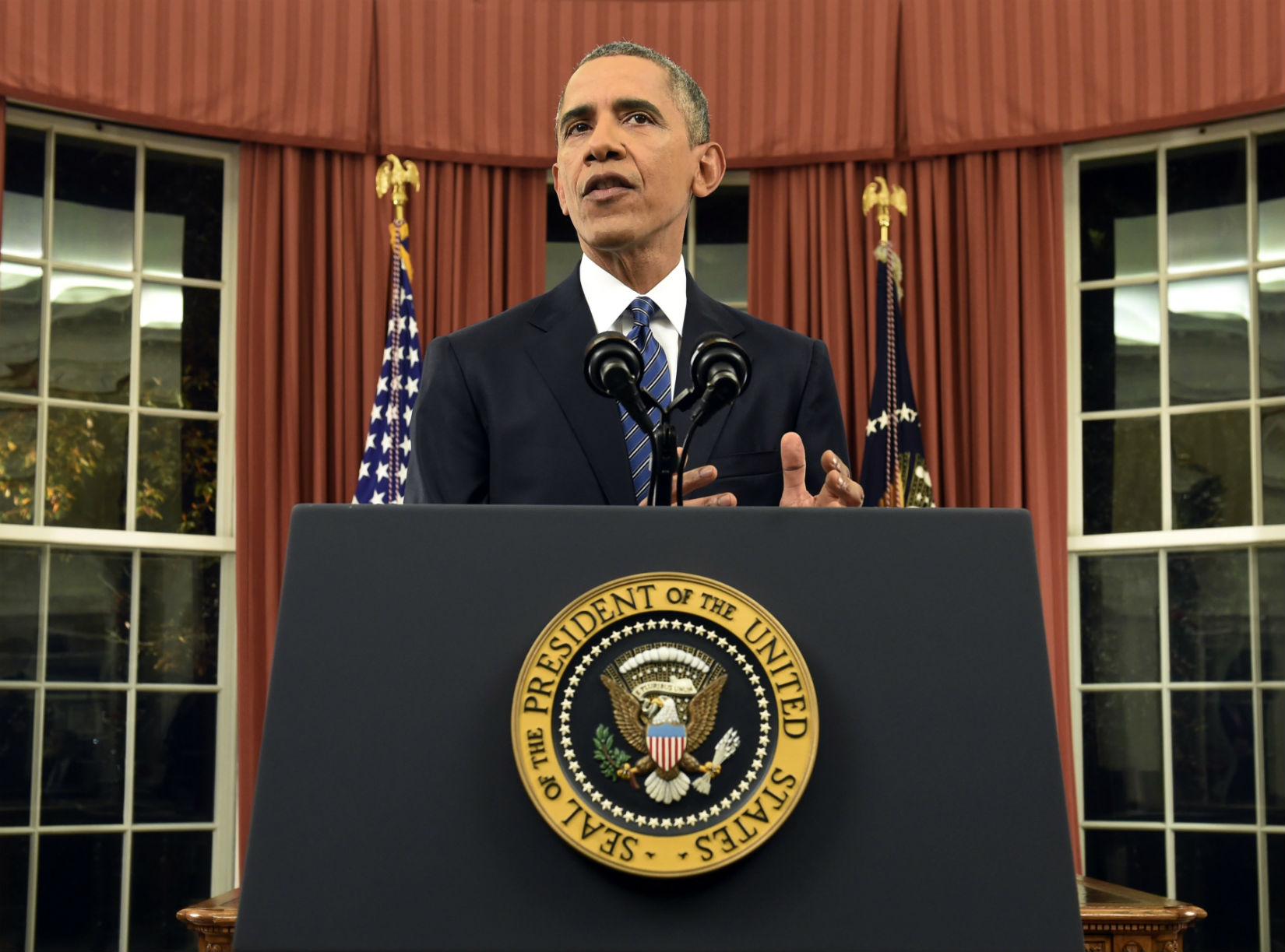 Obama’s short address — just 13 minutes — underscored the simple message, one that seemed to conflict with the iconic, high-profile setting. Obama has used the Oval Office as a backdrop, a favorite of past presidents, just three times since taking office seven years ago.
