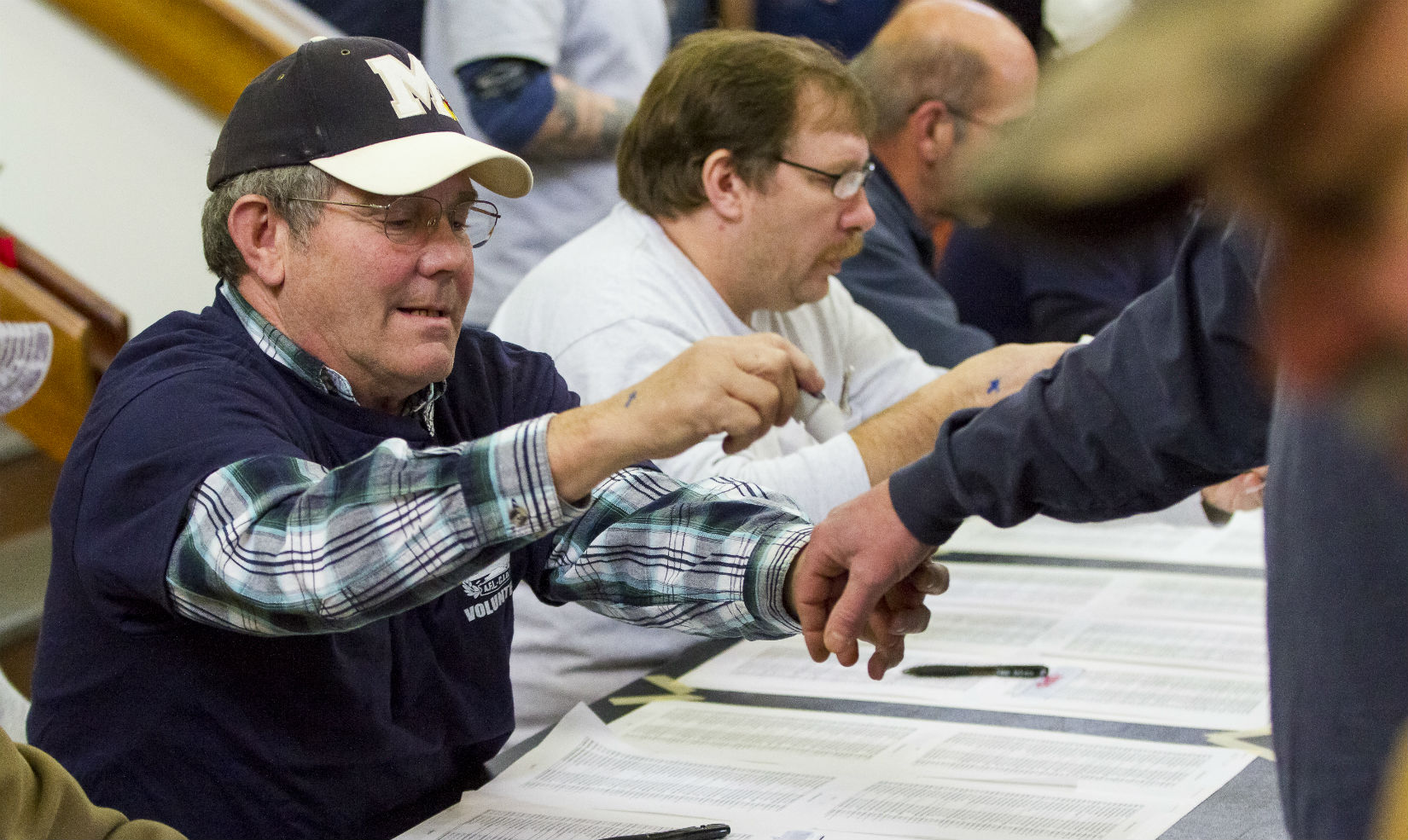 “We’ve done our part. Now they need to step up and do theirs so we can be competitive and win these contracts,” Jay Wadleigh, president of Machinists Union Local S6, said after voting at the Augusta Civic Center.