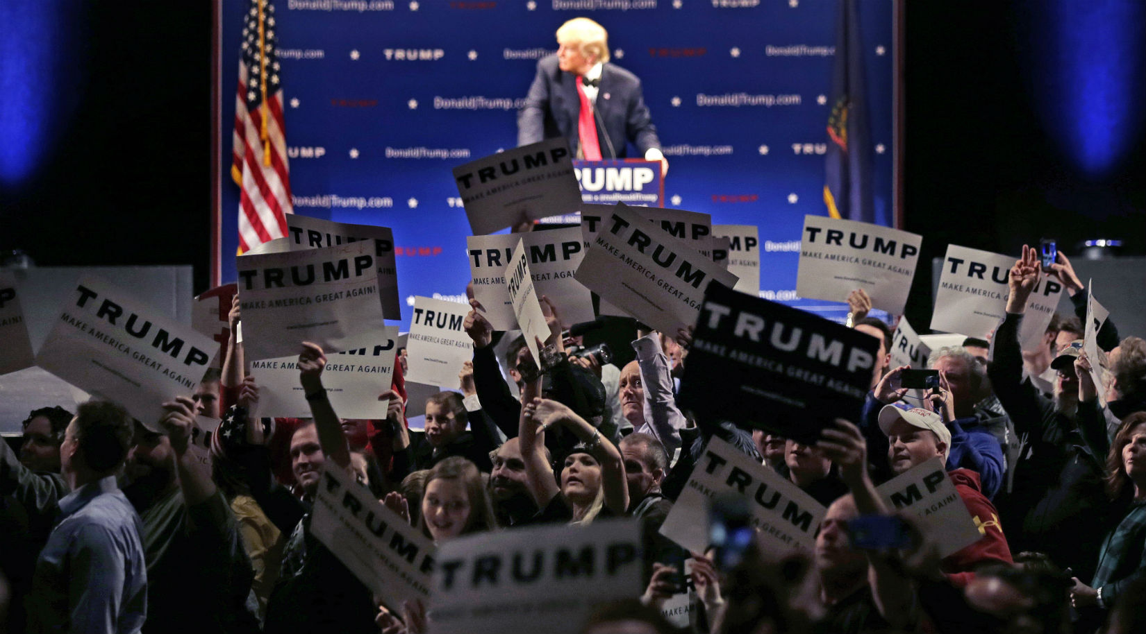 Trump opponents also turned out early and shouted back and forth with supporters as they filtered into the theater. They stood outside during Trump’s speech, and cheered when people left the building.