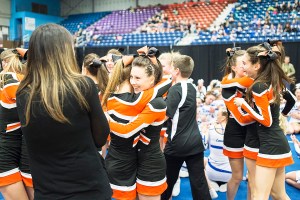 Monmouth tumbled and took to the air to land in third place, allowing the Mustangs compete in states. Like Dirigo, Monmouth had to wing it after the loss off two cheerleaders.