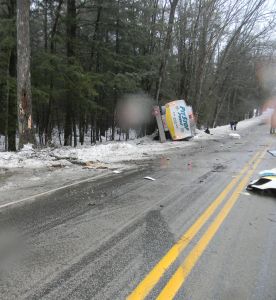 Cumberland County Sheriff’s investigators said 65-year-old James Sherbert lost control of the truck due to wintry conditions and load shifting, causing him to drive off the road where he struck an oak tree at about 1:45 p.m.