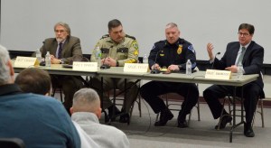 About 50 people questioned the panelists, who included District Attorney Andrew Robinson, Farmington Police Chief Jack Peck and Dr. Art Dingley. The professionals described the quandary of either implementing justice or providing treatment, the connection between drug abuse and crimes, the need for resources to treat addicts and stop the influx of drugs into the state and the destruction of lives.