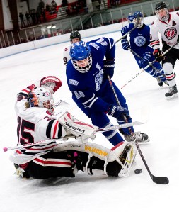 Both teams had plenty of power-play time in the second period to take the lead, but neither could. Scarborough started the period on the man advantage after Rancourt was called for cross-checking to end the first, but the Red Storm couldn’t capitalize. Neither could the Blue Devils with a two-man advantage, firing three unsuccessful shots at Scarborough goalie Ross LeBlond.