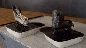 On the third floor is another exhibit which celebrates the museum’s new mission. “Duncan Hewitt: Turning Strange” is a modern sculpture exhibit in wood, mixed media and found objects. Hewitt, is a sculptor from Long Island, Maine. His works are so unusual, that I can only compare them to works shown at the new Whitney Museum of American Art in New York City. They are exciting and important because they provide us different ways of seeing objects that are familiar, making them into works of art. Hewitt’s work titled,“Tacks,” which look like hockey skates, is amazing.