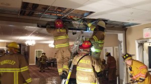 Firefighters used vacuums and squeegees to remove the water and cleaned up the ceiling tiles.