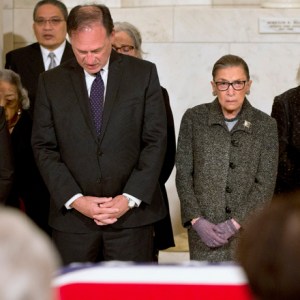 The justices stood near the casket in the same order in which they will sit on a reconfigured bench following Scalia’s death last week in Texas. Chief Justice John Roberts was between Justices Anthony Kennedy, the longest-serving member of the current court, and Clarence Thomas.