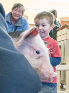 The Auburn Public Library was a little noisier than usual Friday night as pigs, chickens, children, teens and adults were all on hand for the annual Indoor Farmer’s Market. The family event included a mix of jams, jellies, handmade agricultural goods and some sweet treats. In addition to the farm animals brought by Joe Gray of Valley View Farm in Auburn, there was live music being played by an APL employee.