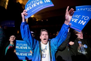 Sanders rallied a capacity crowd at Portland’s State Theater on Wednesday, telling supporters that pundits once thought of him as a “fringe” candidate and Hillary Clinton as the “inevitable nominee.” He told supporters, “Guess what? She’s not so inevitable today.”