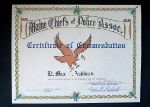 In 1979, Ashburn received a commendation from the Maine Chiefs of Police Association for “outstanding service to his community and his profession.”
