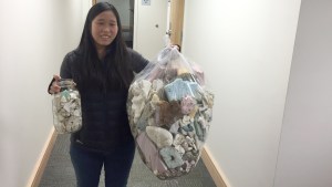 Alwyn Ecker, of Simpson’s Point Road, and a senior at Waynflete School in Portland, brought a garbage bag filled with foam cups, containers and scraps to the podium. She said she collected the garbage in “about an hour” the day before on the banks of the Androscoggin River, just below the Brunswick-Topsham bridge.