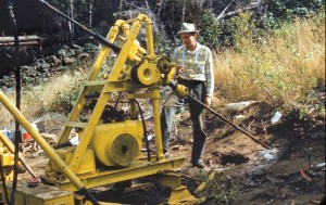 “This piece of equipment was my nemesis,” Perham said. “Among other things, I used to do a lot of core drilling. This (photo) is up to Rangeley, and when I go to the great beyond, I’m taking a picture of this thing with me in my pocket. If I go up, I’m going to throw it off a cloud, and if I go down, I’m going to tell the devil, ‘I’m here, and this thing better be right behind me.’ That rig had a four-cylinder Wisconsin engine on it, that must have been a hybrid of a mule, because it pretty near broke my arm more times to start it … I’m quite sure Noah had one of these on the ark for ballast.”