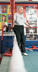 Huntington, who fought at the basement gym when he was a younger man, says he comes in to help because he enjoys the workout and he likes being around fighters. It’s in his blood, you might say. He’s been fighting all his life.