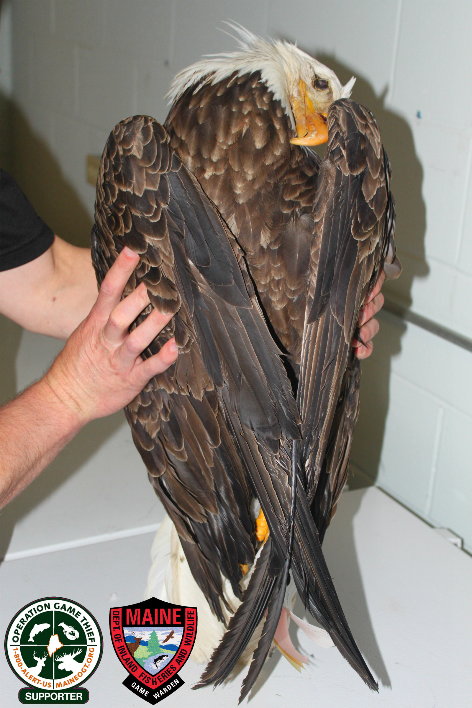 The body of a female, adult eagle was found April 15 on a logging road east of Moosehead Lake. A sportsman reported it to game wardens, according to a warden service statement. Game wardens collected the bald eagle and took it to Avian Haven in Freedom. An examination revealed it had been shot.