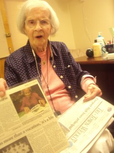 At Hawthorne House, Farrar usually goes to bed at around 10 p.m., unless she is writing letters, as she does to Stam and others. Sometimes, that keeps her up until midnight or so. She’s up when the breakfast bell rings at 7:30 a.m. Farrar professes to have no aches or pains. Her memory is remarkable.