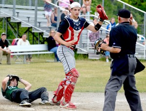 Jacob Atwood led off with a slow roller past Francis for an infield single. Two batters later Atwood was at second when Tyler Reichert singled to right. Atwood rounded third and headed home, but Chris Normand’s throw from right field was relayed to catcher Nick Lerette in time to gun down a would-be Carrabec run.