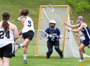 Part of the Saints’ problem was the play between the pipes by Yarmouth goalie MaryKate Gunville, who stood tall during the first St. Dom’s surge.