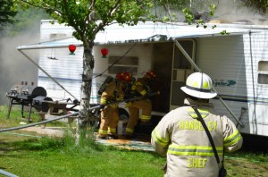The camper was parked on the property of its owner, William Keirstead, at 6 Dad’s Way, off Route 4. No one was staying in it. Keirstead used a garden hose to keep the fire in check until firefighters arrived.