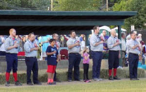 Current members of the town’s still-active first Little League team, the Farmington Braves, yelled, “Play Ball!” and the game began.