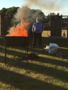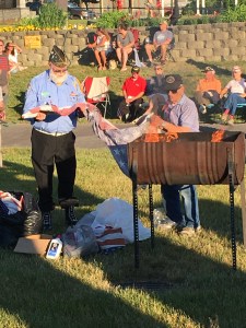 Maurice “Mo” Fournier, a member of the council, and Willie Danforth, chaplain of AMVETS Post 6 of New Gloucester were the honored veterans in charge of flag disposal.