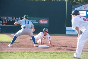 Beeks made it through the first eight Yard Goats (44-37) batters with relative ease, allowing just a two-out walk in the first. Michael Benjamin popped out for the first out of the third, but No. 9 hitter Zach Osborne doubled off the Maine Monster in left field for the first of five straight hits given up by Beeks. The next four each drove in a run, then two batters later Correlle Prime collected the third hit of the inning off the tall wall for another RBI hit, giving the Yard Goats a 5-1 lead.