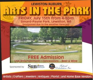 LEWISTON — The arts, crafts, food and entertainment event known as Arts in the Park will be held from 4 to 8 p.m. Friday, July 15, in Simard-Payne Memorial Park.