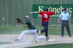 Mitch Davis got on with an error in the outfield, but didn’t stay at first for long. Eddie Turgeon was right behind Davis when the Wells catcher fished a pitch out the dirt and threw to first base, but the ball got past the first baseman. Davis eventually came home on the play after another throwing error from the outfield. Turgeon came home, too. Evan Cox singled and came home on Brock Belanger’s hit.