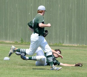 Gage Cote led off with a single — Pastime’s first hit and base runner of the game — and tried to get back to first after Hunter Landry’s line out to second with one out, but he was called out for an inning-ending double play.