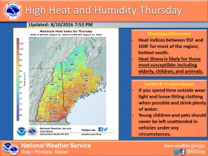 The Portsmouth Herald reports unhealthy levels are expected to be experienced Thursday along Maine’s coast from Kittery to Acadia National Park on Mount Desert Island.