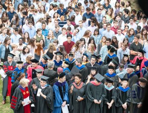 The decision to hold the convocation at the outdoor location was made a few hours before the event, and light rain ended just before the processional.