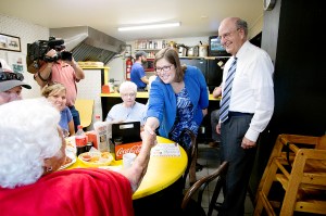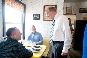 George Mitchell visits Simones’ in Lewiston