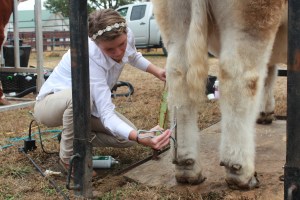 “I started with raising racing pigs when I was 5 years old.” Pride said as she vacuumed her steer’s fur outside the Livestock Show Arena. “My brother is the one who got me into raising steers. I fell in love with cows soon after.”