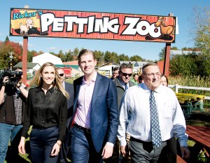 Trump and his wife, Lara, managed to find time to sample some apples, admire horses and livestock, tour a petting zoo and pose for innumerable photographs during their afternoon tour of the 2nd Congressional District.