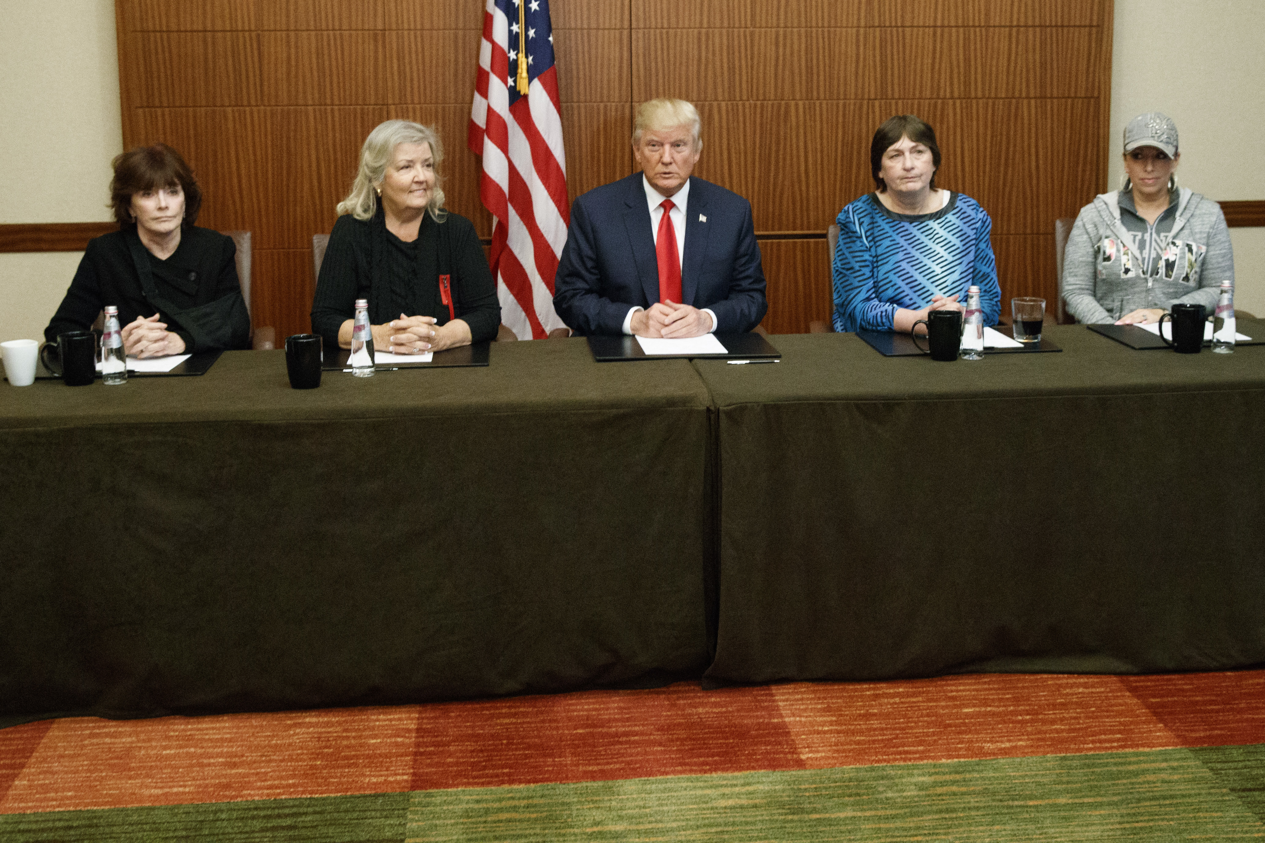 Trump refused to answer questions from reporters about his own aggressive sexual remarks about women during the meeting in a hotel conference room with Paula Jones, Juanita Broaddrick and Kathleen Willey. Kathy Shelton, a fourth woman who appeared with Trump, was a 12-year-old Arkansas sexual assault victim whose alleged assailant was defended by Hillary Clinton.
