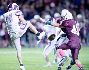 EL finally had something go its way late in the first half when Alex Cook blocked a punt and recovered it at Deering’s 7-yard line. Hartley threw a 2-yard touchdown pass to Blanchard and then repeated the action on the two-point conversion to make it 20-8 going into halftime.