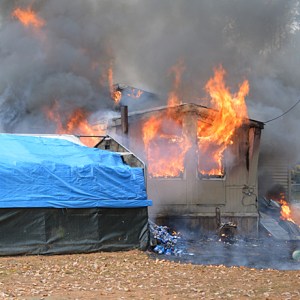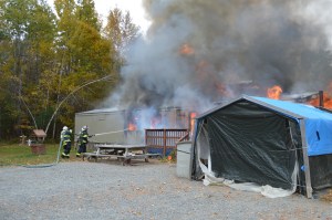 Goose hunter Bob Millay of Chesterville was driving by when his passenger, Terry Kenniston of Strong, told him to stop and back up because the mobile home was on fire, Millay said.
