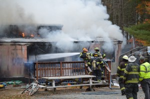 FARMINGTON — A fast-moving fire destroyed a mobile home with a small addition at 877 Whittier Road on Tuesday morning.
