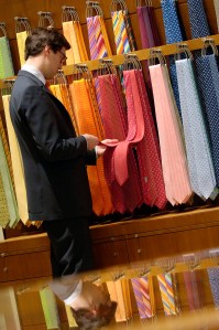 Here’s my prediction: The slim tie of the hepcat and the plump one of the company man are on their way to converging at the mutually happy medium of the 3-inch wide tie. I don’t think we have to worry about anyone’s neckties returning to the napkin-like dimensions witnessed at mid-’90s NBA draft nights and mid-’80s insider-trading trials. (“The wider stuff was too much,” Tarshis un-fondly remembered of an earlier era. “You look at old episodes of the Tonight Show, some of Johnny Carson’s ties were 4-, 4½-inches wide.”)