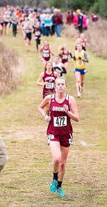 Sophomore Bugsy Hammerton was the highest finisher for St. Dom’s and the tri-county area, placing 10th (20:30.33). She had another signature finish, running down Orono’s Hannah Steelman in the race’s final yards to move up a spot.