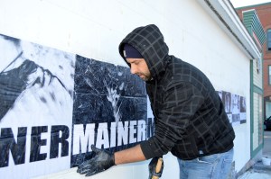 The theme of the portraits of the diverse group of people is “belonging,” Pigeon said as he smoothed the wrinkles from the posters. The posters are glued to the wall and covered in paste, which creates a protective but temporary covering.