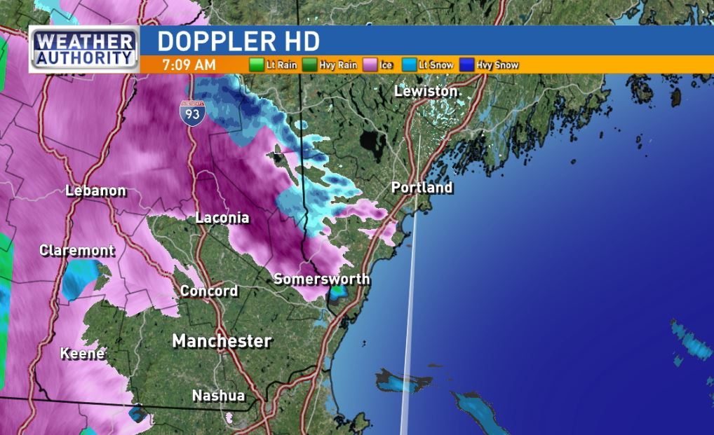 Speed limits on I-95 from Exit 53 in Falmouth to the end of the Maine Turnpike at Mile 109 have been reduced to 45 mph due to freezing rain.