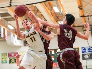 In the third quarter, Curtis and Coffin (eight points in the quarter) exploited the Vikings’ triangle-and-two defense designed to slow down Curtis, a wily point guard, to expand an eight-point halftime lead to 15 points, 52-37.