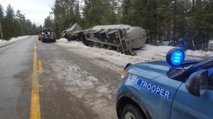 Trucks, car crash on slippery roads