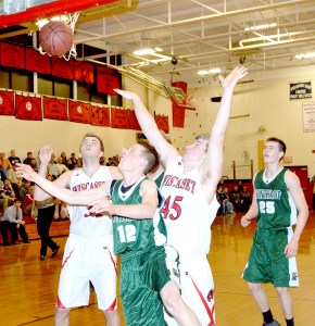 James, who was two rebounds shy of his double-double at the halftime break, scored nine of Wiscasset’s 14 fourth-quarter points on three treys. He hit four on the night, grabbed 11 boards and finished with 27 points.