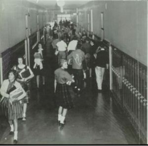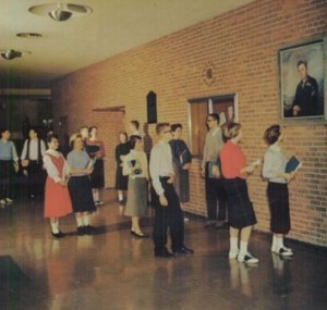 As she recalls it, “We were not allowed to gather that day in the lobby or anywhere else. The teachers, who served as hall monitors that day, made sure we moved along.”