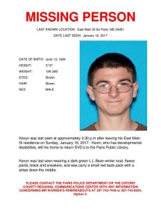Kevyn-Michael Warren, 22, was last seen at approximately 3:30 p.m. after leaving his East Main Street home, according to Paris police. Warren has developmental disabilities and was on his way to the Paris Public Library at 37 Market Square to return DVDs.