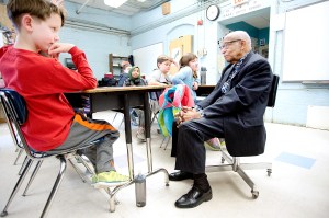 LEWISTON — Sixth-graders at Martel Elementary School were surprised during a Martin Luther King Jr. read-in Tuesday when civil rights activist James Reese, 93, walked into the classroom.