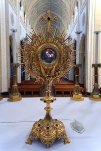 The neo-Latin synonym for the monstrance is “ostensorium,” a word originally used to describe any vessel forged by a goldsmith or silversmith for use in rituals or sacraments of any kind, though we know the term today almost exclusively in terms of sacred vessels used in the Catholic Church.
