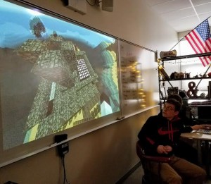 Nate Rackliff and his partners, Xander Platt and Avery Ancker, used a Minecraft program to develop their digital tiny house for book characters Lennie and George. Lennie tends to get into trouble and his friend, George, gets mad at him, Rackliff said.