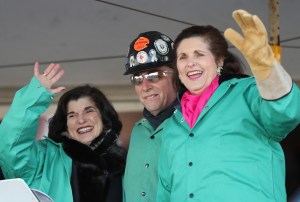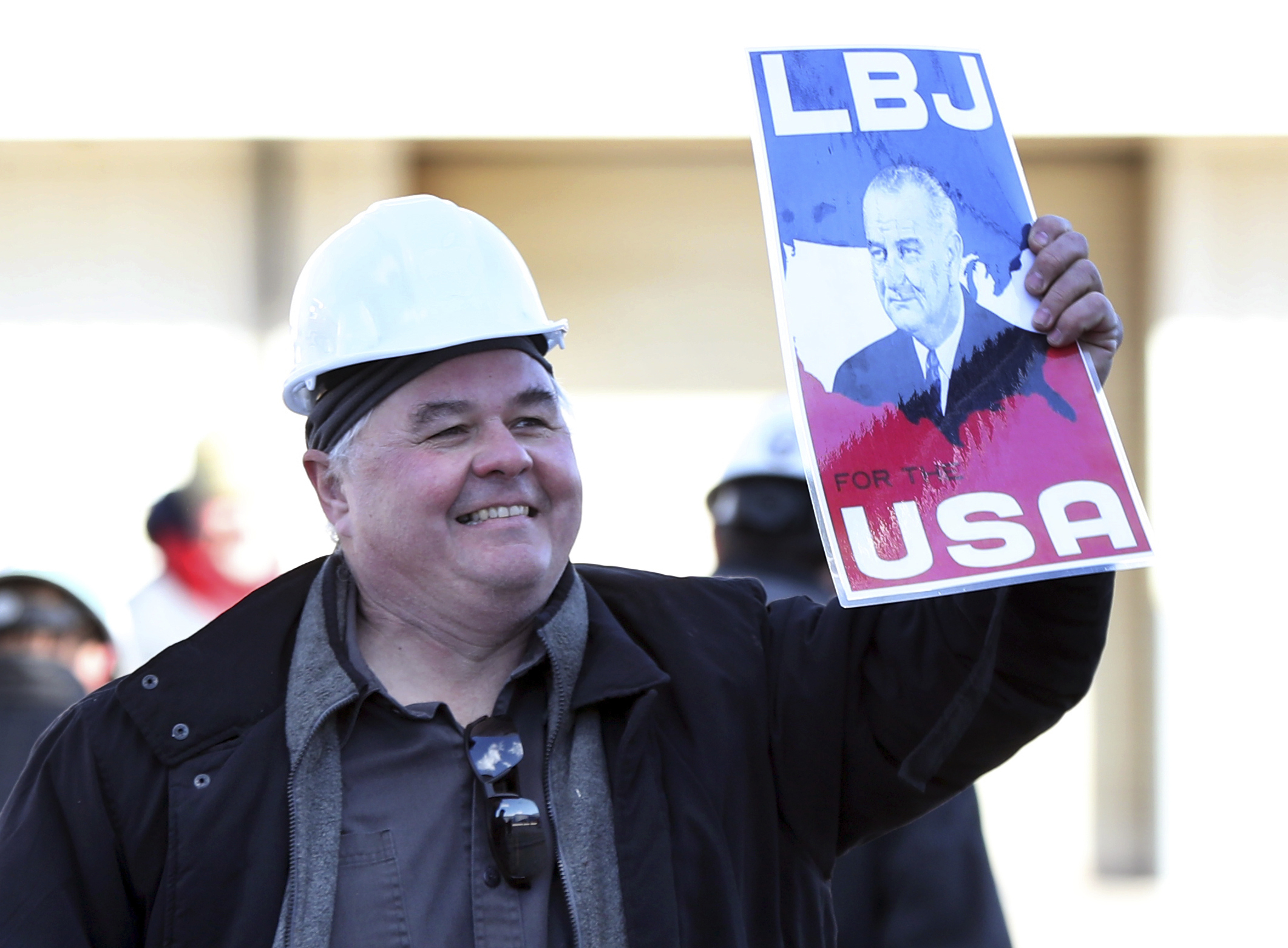 During the ceremony, Luci Baines Johnson singled out an electrician, Larry Stegna, who held an old poster that commemorated LBJ’s campaign in which the Democrat trounced Republican Barry Goldwater.