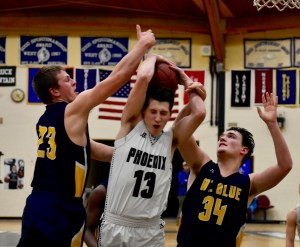 Mt. Blue’s Coop Hollingsworth, who was a force underneath, scored 11 points.